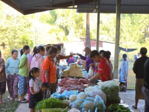 The atmosphere at the Boupha Community Market last Friday, December 12, 2025, was very lively with more than 15 vendors